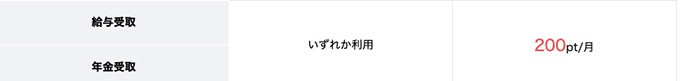 • 給与受取・年金受取:200pt/月