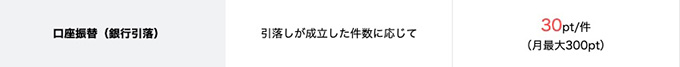 • 口座振替(銀行引落):30pt/件※最大300pt