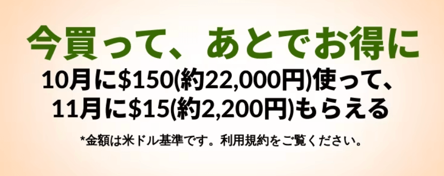 | 利用条件 | 60米ドル以上の購入 |