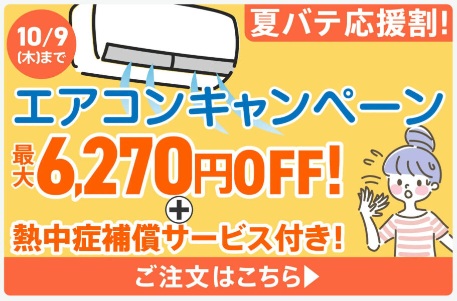 夏バテ応援割!エアコンキャンペーン最大6,270円オフ【25/10/9まで】