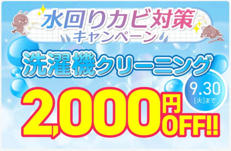 水回りカビ対策キャンペーン 洗濯機クリーニング2,000円オフ【25/9/30まで】