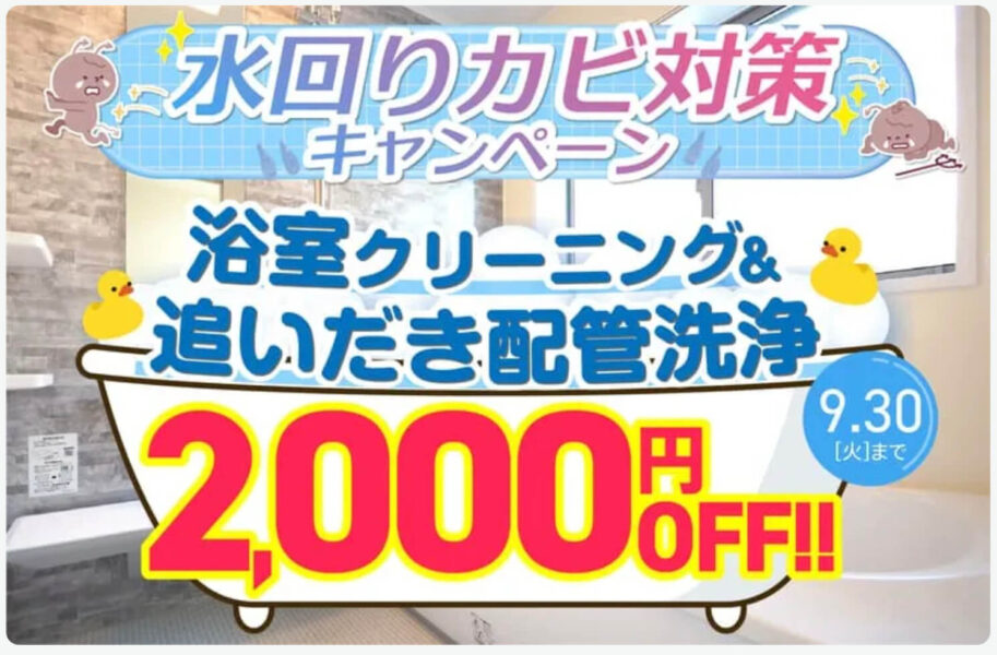 水回りカビ対策キャンペーン 浴室クリーニング2,000円オフ【25/9/30まで】