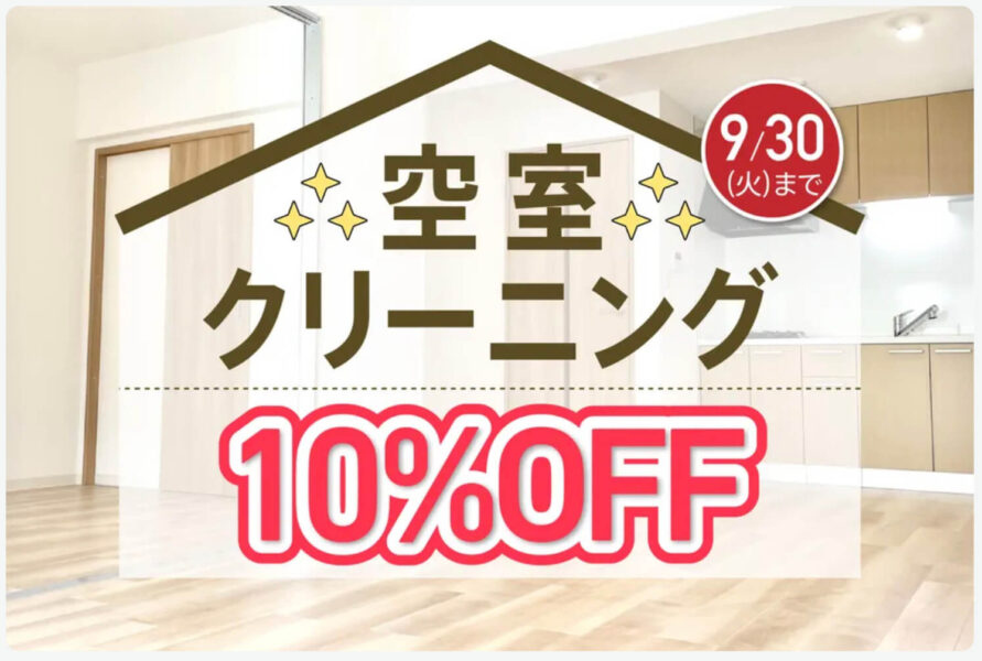 引っ越し前後で空室になったお部屋のお掃除が10%OFFです!