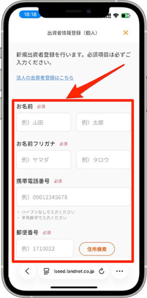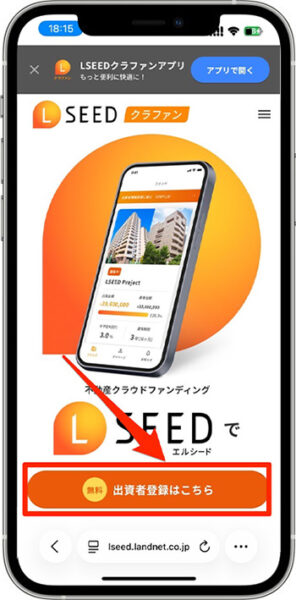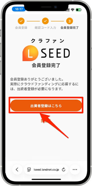 - 『出資者登録はこちら』をタップします。