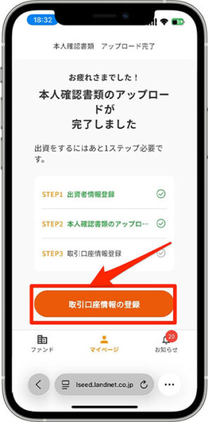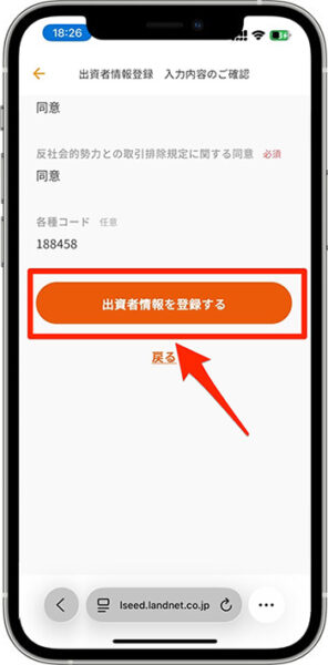 - 入力内容を確認し、『出資者情報を登録する』をタップします。
