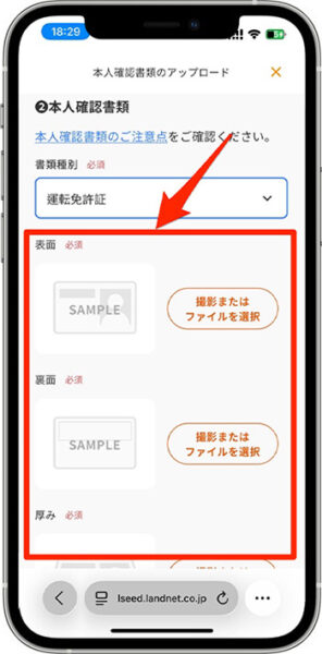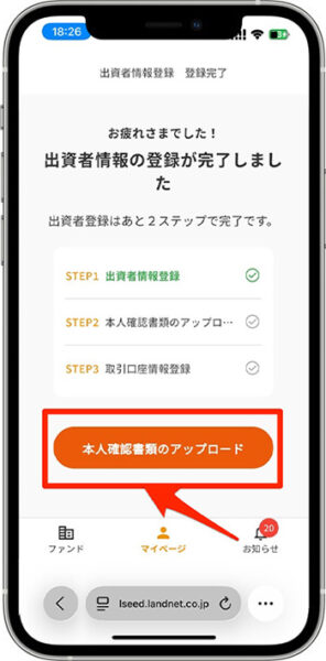 - 『本人確認書類のアップロード』をタップします。