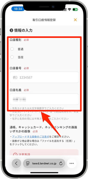 - 口座情報を入力します。