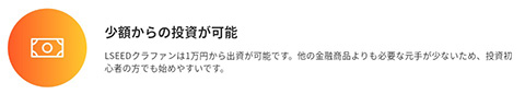1万円からスタートできるLSEEDは、まだ投資経験が少ない方や、資金が十分にない方でも参加できるのがメリットの1つです。