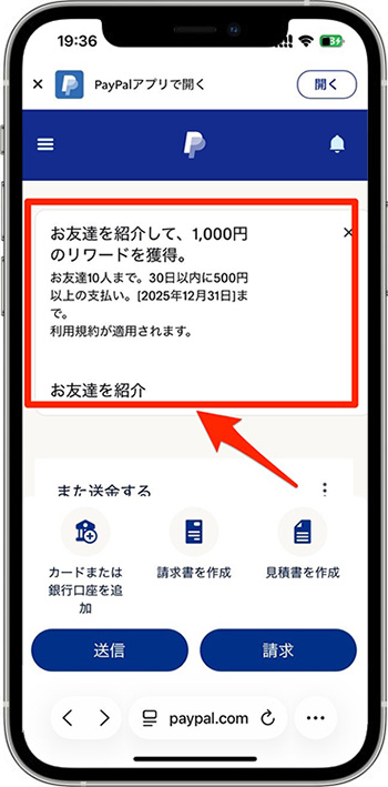 - PayPalの紹介キャンペーンで1,000円分のリワードがもらえる