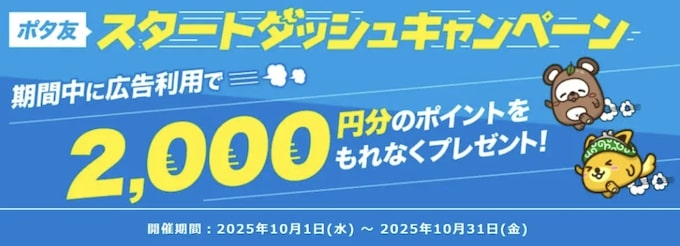 【2,000円分】ポタ友スタートダッシュキャンペーン