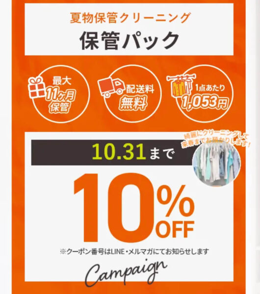 せんたく便では、保管パックを利用すると10%OFFになるキャンペーンを開催しています。