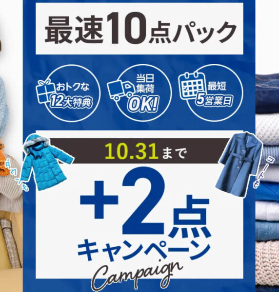 せんたく便の期間限定の最速10点パックに2点プラスキャンペーン!