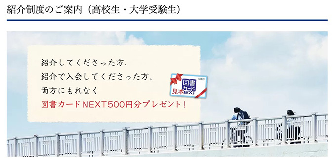 • Z会の友達紹介では紹介者・入会者ともに図書カード500円分がもらえる