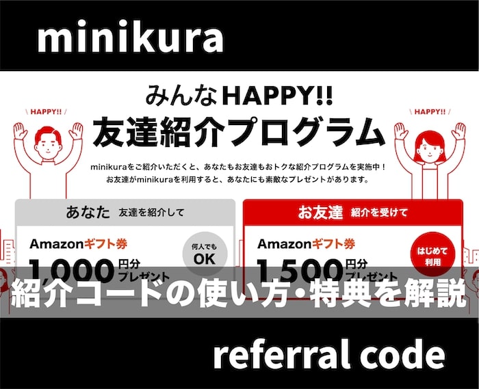 【10月最新】minikura(ミニクラ)の紹介コード・キャンペーンで1,500円分のAmazonギフト券がもらえる!