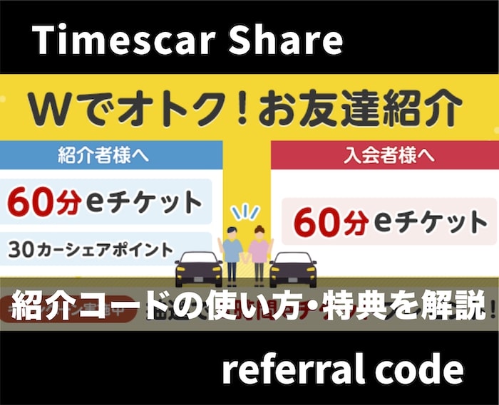 【10月最新】タイムズカーシェアの紹介コード・キャンペーンで60分eチケットがもらえる!